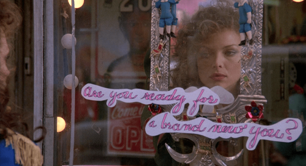 Married to the Mob mirrors films like Desperately Seeking Susan (Susan Seidelman, 1985) in tone, tapping into the theme of women looking to achieve more in their lives than white picket fences and TV dinners. Films throughout the 1980s operated on this thesis, depicting unhappily married women determined to break free from the unsatisfying lives in the suburbs that were sucking their souls dry. Married to the Mob takes this a step further.