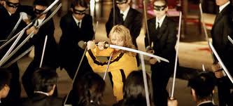 The empowerment that the women in his films receive is, by and large, more effective than the empowerment that I have seen any women receive in “chick flicks.” But then again- perhaps Kill Bill is just my kind of Chick Flick. Tarantino uses the Kung-Fu rhetoric within Kill Bill to establish and discuss the reclaiming of power within one woman, played by Uma Thurman.