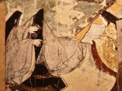 image from the illustrated scroll, "The Tale of Genji (Genji monogatari)" - a narrative novel authored by Lady Murasaki; painted by Takayoshi in the 12th century