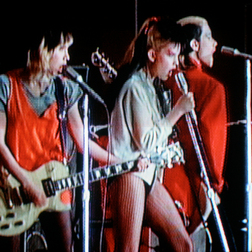 The Stains’ adoption of hyper-feminine aesthetics alongside an aggressively sexual and “tough” demeanor seems to reflect the desire to stay away from strict gender categorization, and yet maintain a female identity. This was not unusual for women in the punk world, and presumably, as a result of Caroline Coon’s role as creative consultant, it is the reason why the physical appearance, attitude and conduct of The Stains brings to mind such influential female bands from the punk-rock era, such as the X-Ray Spex, the Slits, the Au Pairs, and the Raincoats, amongst others. This band of young women seems to act almost as a kind of quoting gesture on the part of Coon and Dowd, of the bands that paved the way for these filmic “girls who created themselves.”