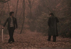 The first time I saw this film, I think I actually understood it better than subsequent times. When I say that this is a piece of cinematic madness that makes Tom Waits’ Renfield look like a normal upstanding guy! The short list for this film would tell you that Versus contains the following: zombies, Yakuza, intergalactic travel, reincarnation, and a cyclic conflict between two warriors that repeats itself every time the individuals involved are back in human form. The longer list would give you cannibalism, vampirism, homosexuality, murder, revenge, and escaped convicts, all interacting within a Forest of Resurrection. According to Versus logic, this forest is in Japan, and is therefore the 444th out of 666 portals that connect this world with the next. And I haven’t even told you what the film is about!