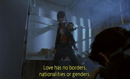 In a sense, Takeuchi’s film is referencing Japanese theater/film history and making an attempt to recall and rewrite a new one. Tobio’s transexuality not only plays on the existence of the wakashu, but decidedly challenges modern homophobia. This film has a fun and playful front, but it does recognize some extremely powerful and significant topics. In this particular instance, Ace’s adoration for Guitar Wolf makes him realize that his fear was misguided, and he spends the remainder of the film looking for Tobio in order to be reunited with the person that he loves, regardless of their gender.