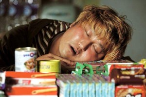 As a friend of mine said, “The Host is great because it is the only monster movie that he knows of with a mentally challenged father in the main role.” While I wouldn’t go so far as to say that he’s mentally challenged, Gang-du is definitely different. He works at his father’s food stand right beside the Han River. His Dad, Hee-bong, spends most of his time watching out for his son and the shop as well as for his granddaughter (Gang-du’s child), Hyun-seo. We also find out at this juncture that Gung-du has a sister who is a highly-ranked professional archer (Nam-joo), and a brother who went to college and used to be a student protester but is now on the drunker end of the spectrum (Nam-il).
