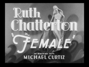 [17] Cohen, John S. Jr. “The New Talkie: Female With Ruth Chatterton, a Tale of a ‘Captain of Industry.’” 3 November 1933. Warner Brothers Archives. .Clippings File, Female.